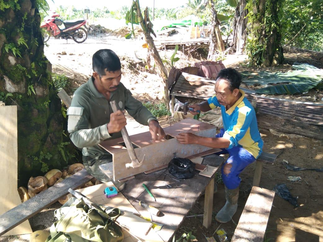 BENGKAYANG – Personil Satuan Tugas (Satgas) TNI Manunggal Membangun Desa (TMMD) Ke-111 Kodim 1202/Singkawang Membuat Cetakan dinding jembatan di Dusun Trimulya Desa Sentangau Jaya Jalan Trans Segorong Kecamatan Seluas Kab Bengkayang.