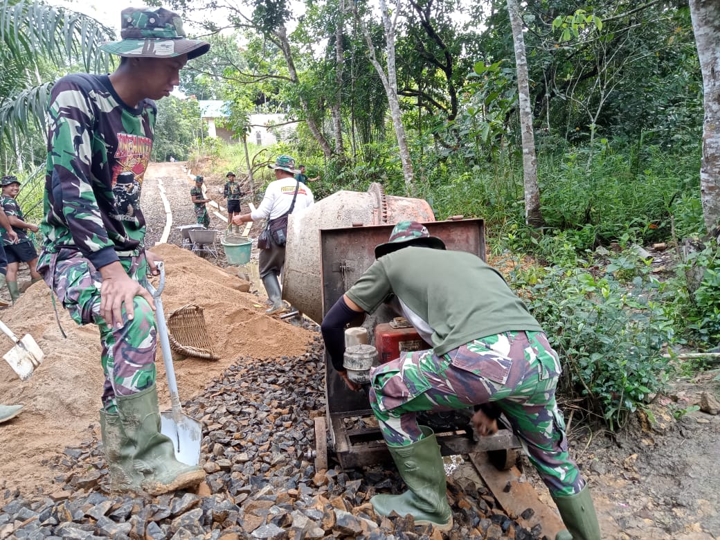 Bengkayang – Guna mensukseskan kegiatan TMMD ke-111 Kodim 1202/Skw gunakan mesin molen beton untuk percepat pengecoran jalan di Desa Sentangau Jaya.