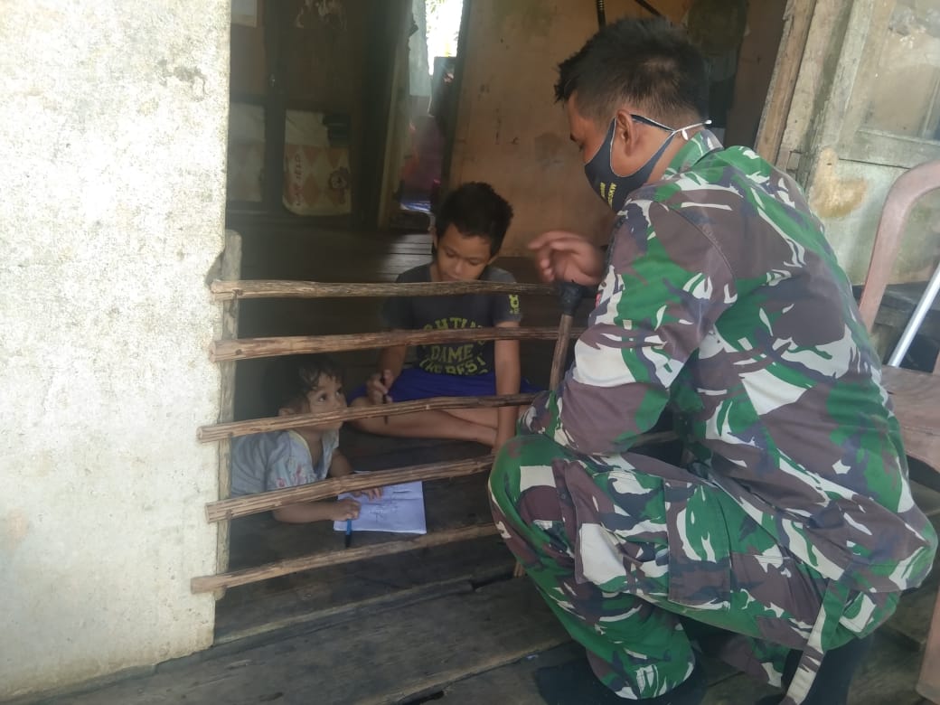 Doni yang duduk di bangku kelas 2 SD menggatakan “merasa senang karna dapat di ajari membaca dan menulis oleh bapak tentara”.