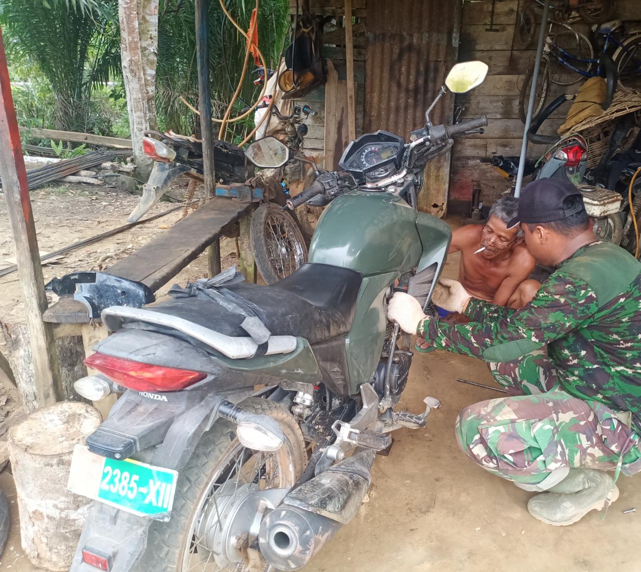 Namun, sebelum masuk lokasi TMMD menyempatkan waktunya untuk mengecek kondisi sepeda motor yang selama ini menemani dengan setia pada tiap kegiatan.