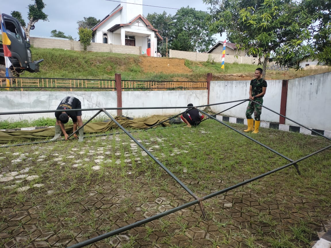 Agar tercipta rasa kebersamaan dan gotong royong saling membatu warga masyarakat serta mempererat hubungan tali silahturahmi kegiatan pemasangan tenda tersebut menujukan rasa kebersamaan dan ke kompakan antara warga dan TNI