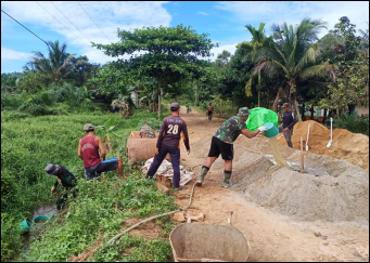 Anggota Satgas TMMD Ke-111 Kodim 1202/Skw Bergotong Royong Menyelesaikan Pekerjaan Program TMMD