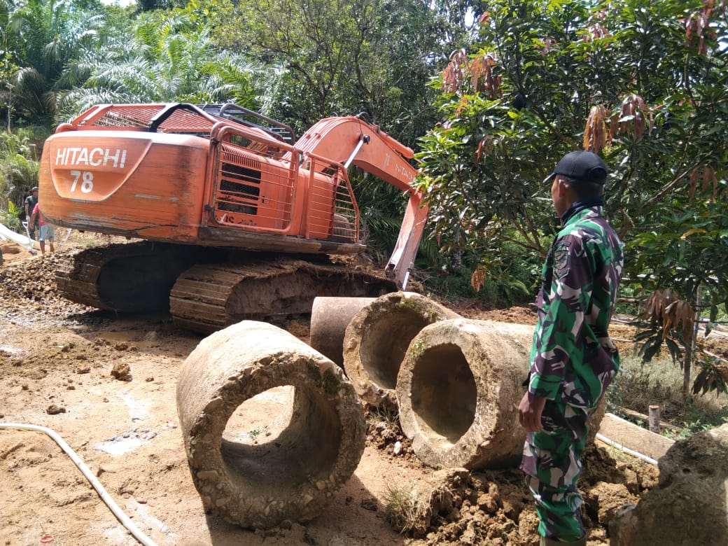 ” dengan dibantu satu unit alat berat excavator, Pembongkaran gorong-gorong dan penggalian tanah tidak diperlukan waktu yang lama, serta dalam pekerjaan tersebut didampingi beberapa anggota satgas dan masyarakat setempat” ujar Serda Galuh
