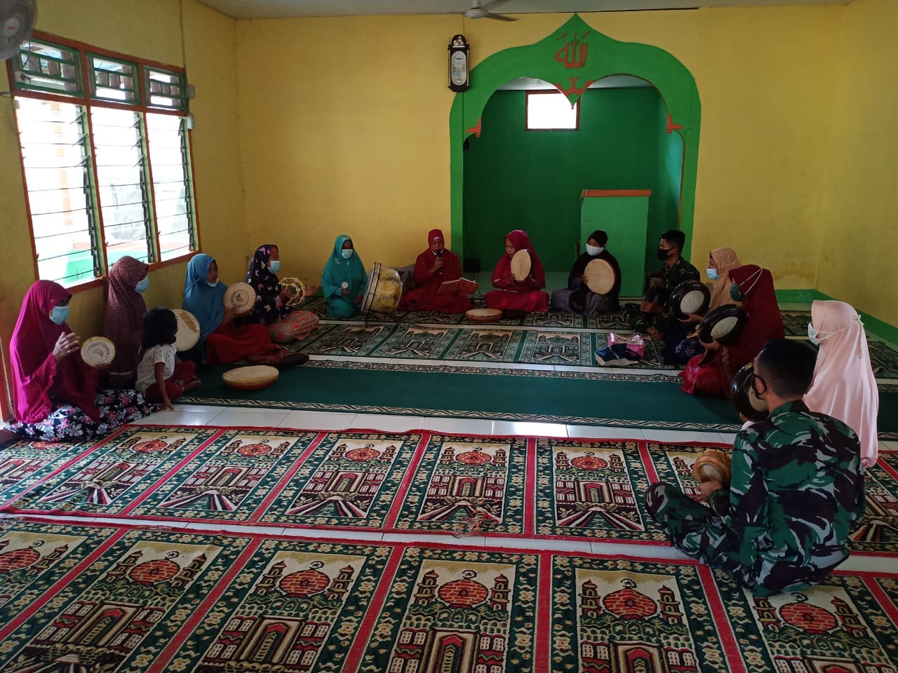 Bengkayang – Anggota Satgas TMMD ke Kodim 1202/Skw, Serda Dika melaksanakan kegiatan latihan Rabana bersama warga, Serda Dika menyempatkan untuk belajar alat musik Rebana yang diketuai oleh Ibu Nurul. Saking asyiknya, bisa sampai lupa waktu.