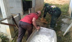 Anggota Satgas TMMD Ke-111 Kodim 1202/Skw (Komsos) Sama Warga.