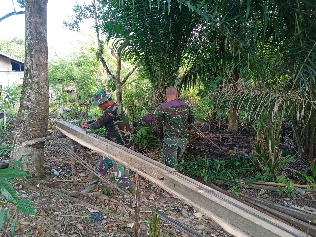 Bengkayang- Kamis (15/06/2021) Tim Satgas TMMD ke-111 Kodim1202/skw terus berupaya menyelesaikan pekerjaan, hal itu terlihat dari kegiatan pembuatan kerangka besi yang akan digunakan sebagai konstruksi pembuatan jembatan.