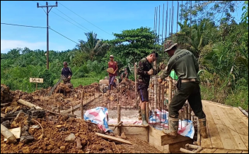 Anggota Satgas TMMD Ke-111 Kodim 1202/Skw Terus Maksimalkan Pembuatan Jembatan Beton