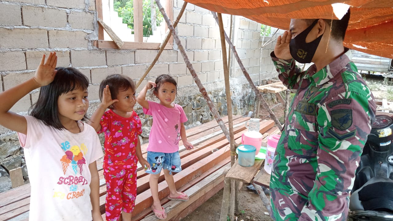 untuk mewujudkan hal tersebut, Anggota Satgas TMMD ke-111 Kodim 1202/Singkawang Serda Dhika A.P. memberi materi Penghormatan menghafal Pancasila dan menyanyikan lagu Indonesia Raya, Rabu (16/06/2021)