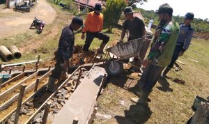 Bengkayang – Saling bahu membahu anggota satgas TMMD ke 111 kodim 1202/skw lanjutkan pemasangan pondasi pagar gereja di desa setangau jaya kec. seluas kab. bengkayang.