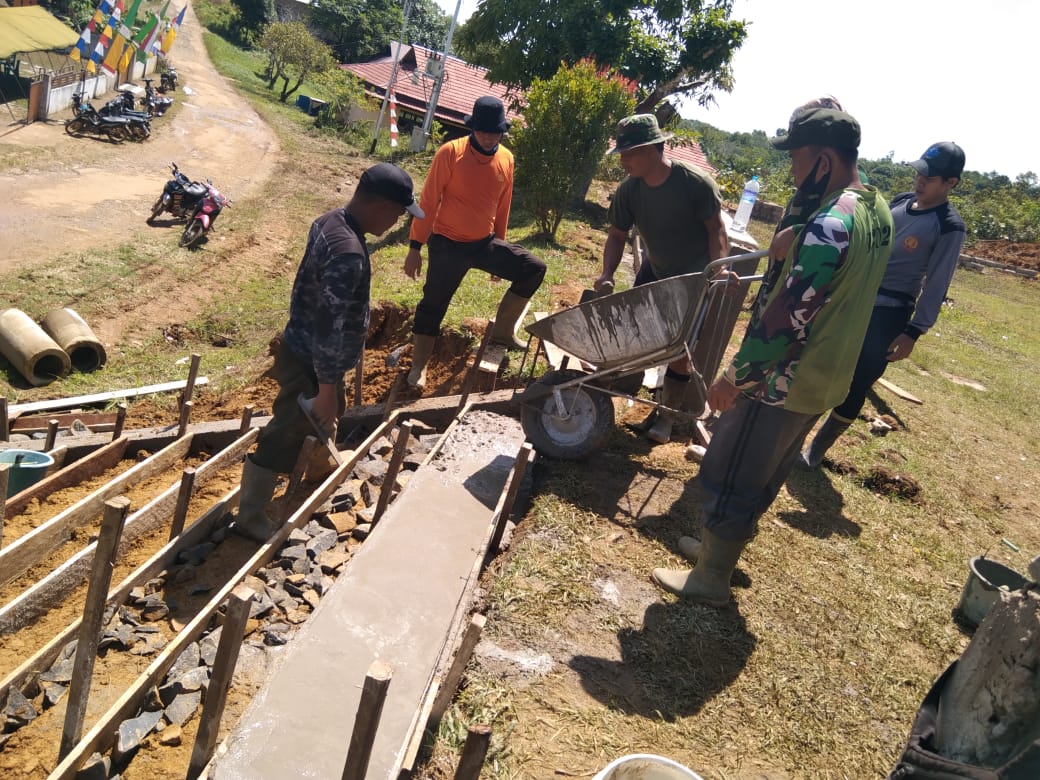 pembangunan infrastruktur ini anak tangga Gereja akhirnya memasuki tahap pengecoran, walaupun peralatan yang digunakan tergolong sederhana, tetapi itu tidak menjadi penghalang bagi para pekerja anggota satgas TMMD maupun masyarakat.