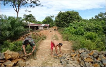 Angkut Batu Bersama Masyarakat Satgas TMMD Ke-111 Kodim 1202/Skw