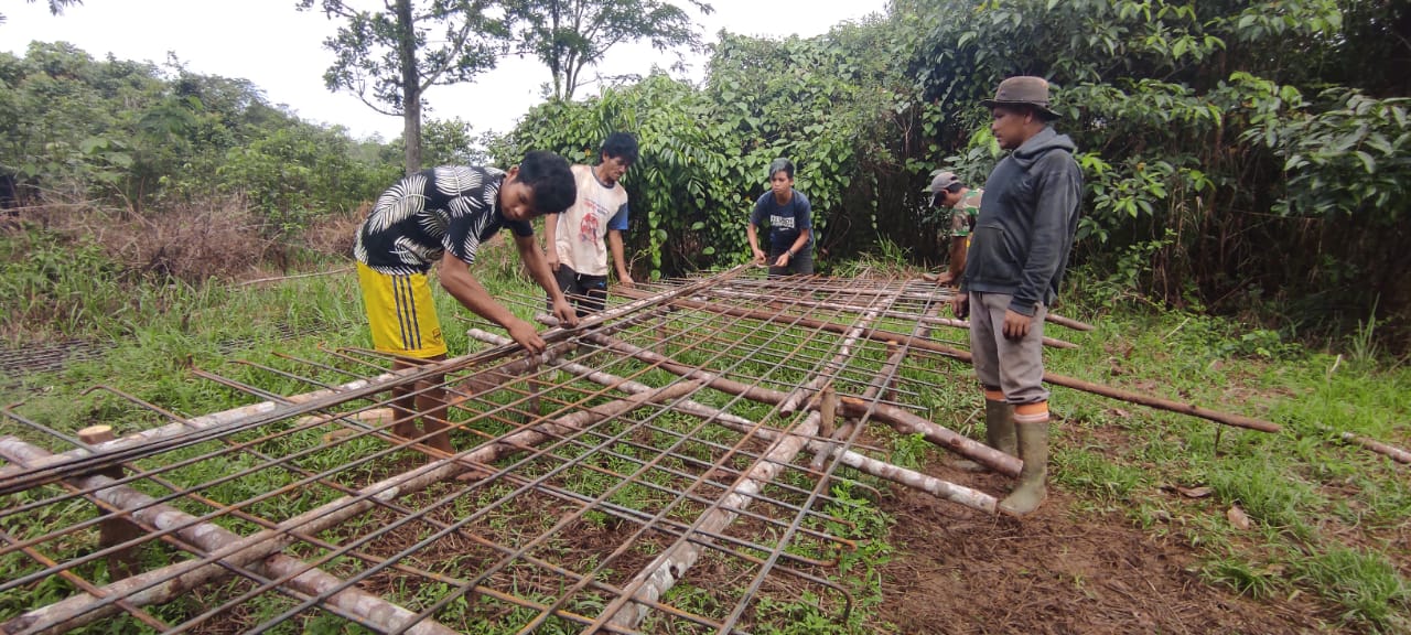 Bengkayang,- anggota satgas TMMD ke-111 Kodim 1202/SKW bersama masyarakat bergotong royong dalam membuat rangkaian besi untuk pembangunan jembatan di desa setangau jaya kec. seluas kab. bengkayang.