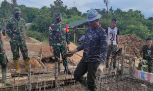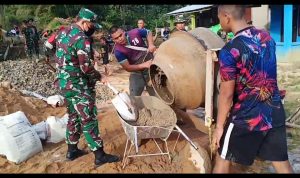 Bengkayang – antusias masyarakat desa sentangau jaya kec. seluas kab. bengkayang melihat anggota satgas TMMD ke 111 kodim 1202/skw dalam mengerjakan pembangunan pagar gereja yang sedang di kerjakan.