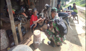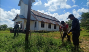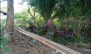 Antusias masyarakat desa melihat pengerjaan pagar gereja oleh anggota satgas TMMD