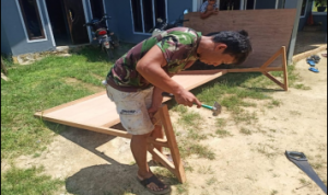 Bengkayang – antusias masyarakat desa sentangau jaya kec. seluas kab. bengkayang melihat anggota satgas TMMD ke 111 kodim 1202/skw dalam mengerjakan pembangunan pagar gereja yang sedang di kerjakan.