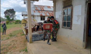 Antusias masyarakat desa melihat pengerjaan pagar gereja oleh anggota satgas TMMD