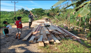 Hal ini dilakukan oleh Babinsa wilayah TMMD Serda Yeremia beserta rekannya yang tergabung dalam Satgas TMMD Regtas-111 Kodim 1202/Skw, di hari pertama TMMD