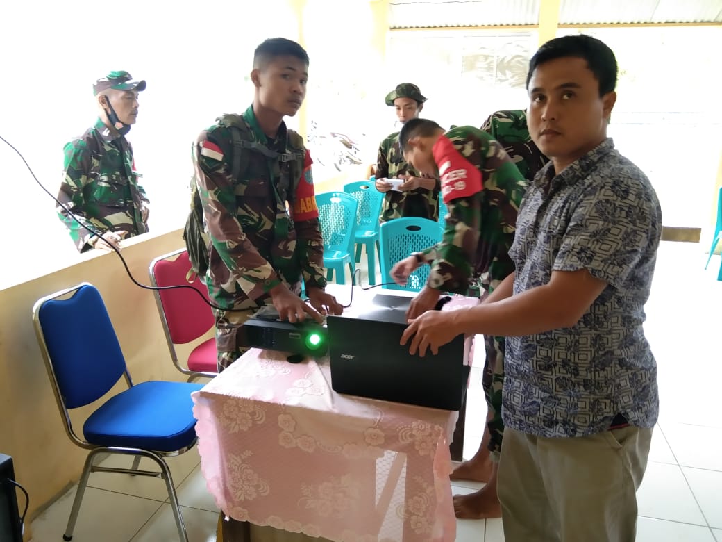 Dalam mengisi waktu istirahat selepas melakukan kegiatan satgas memberikan hiburan yang mendidik kepada warga khususnya anak-anak. “Dengan menggunakan perangkat laptop dan proyektor Infocus yang kami bawa ini, bisa memberikan hiburan mendidik untuk anak-anak,” ujar salah satu anggota satgas TMMD Serda Yeremia.