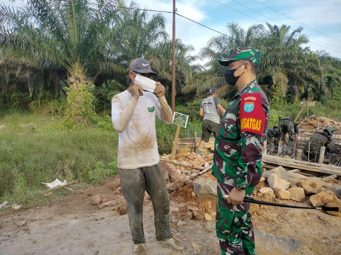 Dansatgas Selalu Terapkan Menggunakan Masker Di Lokasi TMMD ke -111 kodim 1202/skw