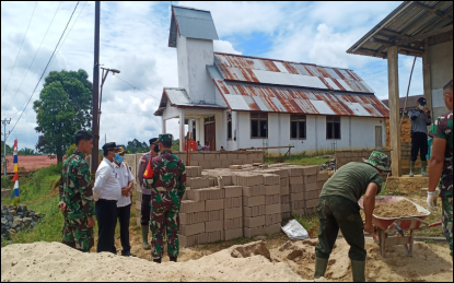 Bengkayang – Dalam jalan nya pelaksanaan TMMD ke-111 Kodim 1202/Skw yang berlokasi di Desa Setangau Jaya Kec. Seluas Kab. Bengkayang, Dansatgas TMMD bersama Kapolsek dan Forkopimcam melakukan pengecekan dan peninjauan langsung perkembangan pembangunan pagar gereja yang telah di rencanakan dalam kegiatan TMMD.