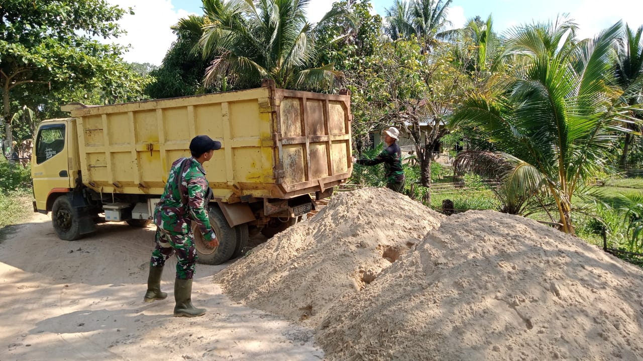 Serda Andika mengatakan ,setiap hari material selalu berdatangan untuk menunjang kegiatan TMMD agar berjalan sesuai rencana.