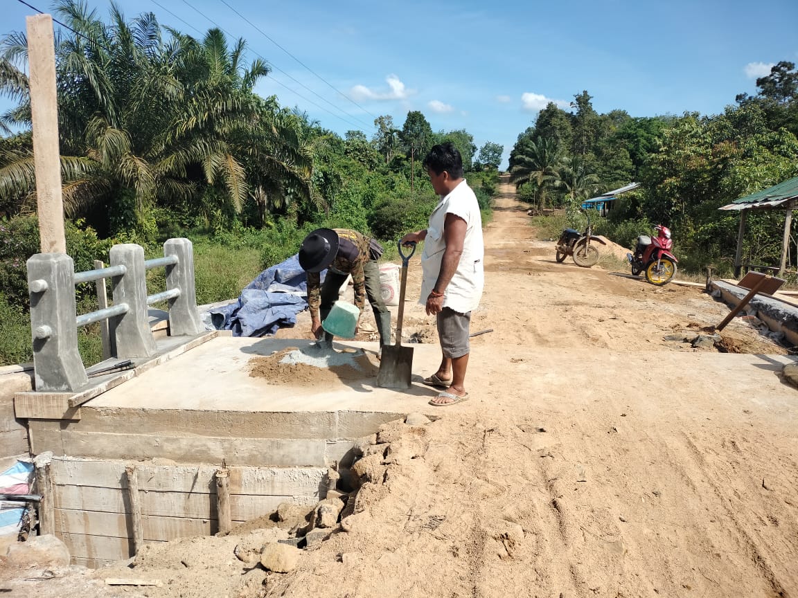 Alhasil, keduanya tampak cocok dalam meramu adukkan semen dan pasir untuk pemasangan plester badan jembatan. “Saya selalu meminta pertimbangan dengan tukang yang ada di desa ini. Mereka pasti lebih berpengalaman dalam bidang pertukangan batu,” ungkap Serda Bandut.