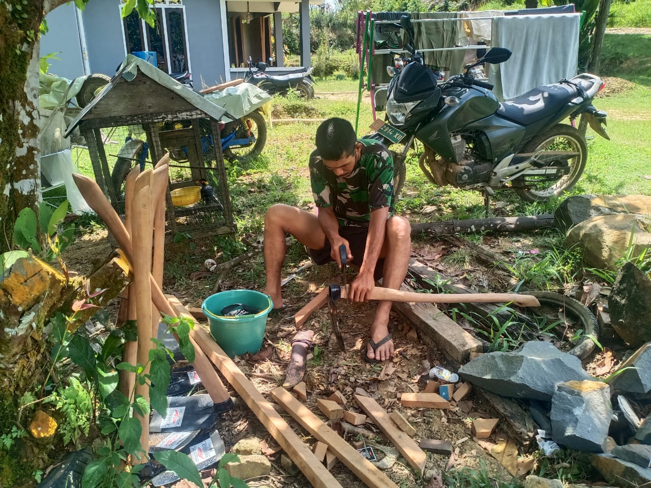 “Kami juga membawa peralatan pertukangan seperti cangkul, sekop, palu, gerobak dan lain-lainnya Sehingga dalam pelaksanaan kegiatan kami siap tanpa terkendala peralatan,” pungkas Dansatgas Letkol Inf Condro Edi Wibowo S.Sos. M.Han.