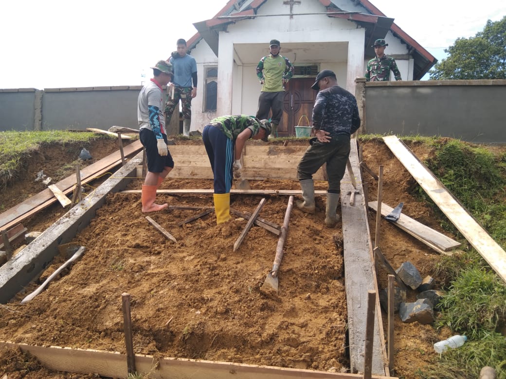 Memang Pondasi Anak Tangga Gereja Terus Dilanjut Oleh Satgas TMMD 111 Kodim 1202/Singkawang