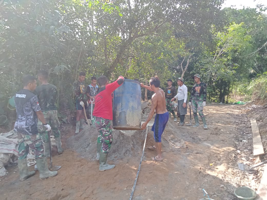 Dalam proses pengerjaan pembuatan jalan rabat beton yang akan dikerjakan sepanjang 350 meter dan akan diselesaikan sebelum kegiatan TMMD di tutup, maka kami dan warga bekerja keras dalam menyelesaikannya agar dapat digunakan oleh masyarakat untuk beraktivitas pergi ke tempat usaha, ladang,kebun,sekolah dan lain sebagainya,Ujar Serda Sunarko.