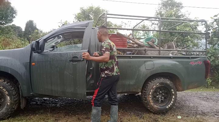 “Untuk melaksanakan pengangkutan material kami harus mengerahkan mobil dinas Kodim 1202/Skw. Ini untuk mengangkut material hingga kelokasi kerja,” kata Kapten Inf Sarmin, Koordinator lapangan TMMD 111 Kodim 1202/Skw.