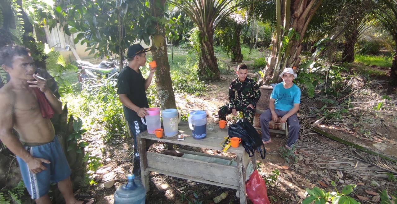 Satgas TMMD selalu menyempatkan diri untuk berkomunikasi sosial (Komsos) bersama warga setempat, dengan memanfaatkan waktu istirahat.