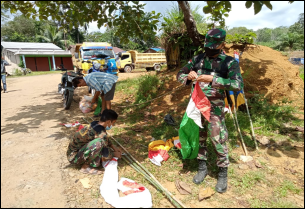 TMMD mengucapkan,” umbul umbul ini kami pasang sebagai wujud rasa sukur kami dan betapa suka citanya kami karena Desa kami mendapatkan program TMMD Regular