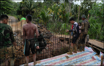 Pasi Ter Mengawasi Pemasangan Rangka Besi Cor Jembatan di Lokasi TMMD