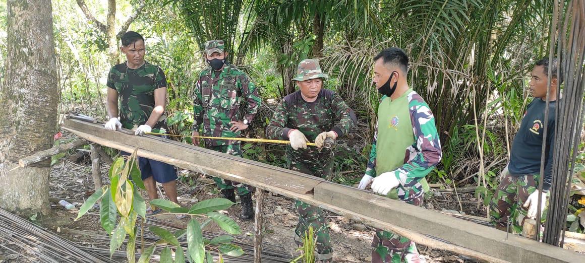 Bengkayang– Rabu (15/06/2021) Kepala Staf Kodim 1202/skw Mayor Inf suharmoko meninjau kegitan pembuatan kerangka besi yang nanti akan di gunakan untuk pembuatan jembatan TMMD di Desa swntagau jaya Kecamatan seluas Kabupaten Bengkayang.