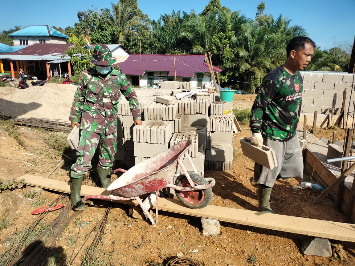 Bengkayang – Setelah pondasi pagar bagian depan gereja rampung, Satgas TMMD Ke-111 Kodim 1202/Singkawang, di Desa Sentangau Jaya, Kecamatan Seluas, Kabupaten Bengkayang kini melanjutkan pengerjaan pemasangan batako pada pagar bagian depan Gereja Katolik Santo Kristoforus.