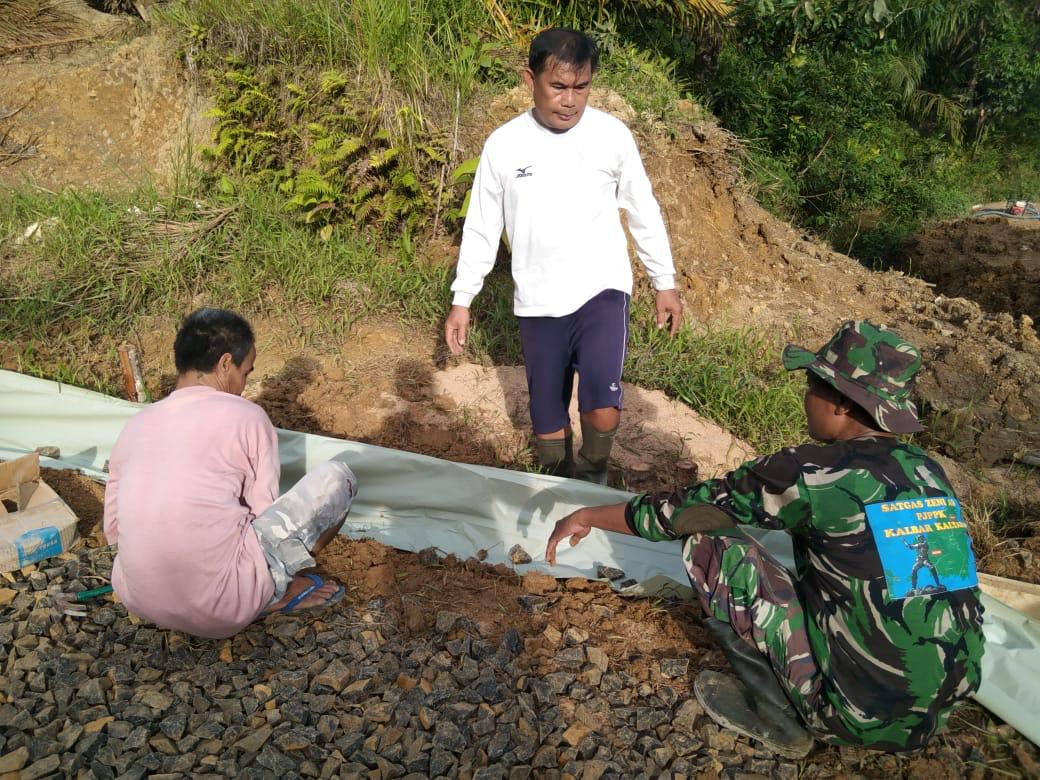 Cuaca yang cerah,juga sangat mendukung pekerjaan pengecoran jalan Satgas TMMD Kodim 1202/Singkawang bersama warga,tengah menggelar plastik sebagai alas cor beton yang berhubungan dengan tanah,berfungsi untuk menahan agar air semen tidak merembes kedalam tanah”Intinya fungsi dari plastik cor ini,untuk menahan agar uap maupun air tidak langsung masuk ke pori-pori cor juga menghindari air campuran semen pada material cor tidak hilang karena meresap ke dalam tanah”, jelasnya.