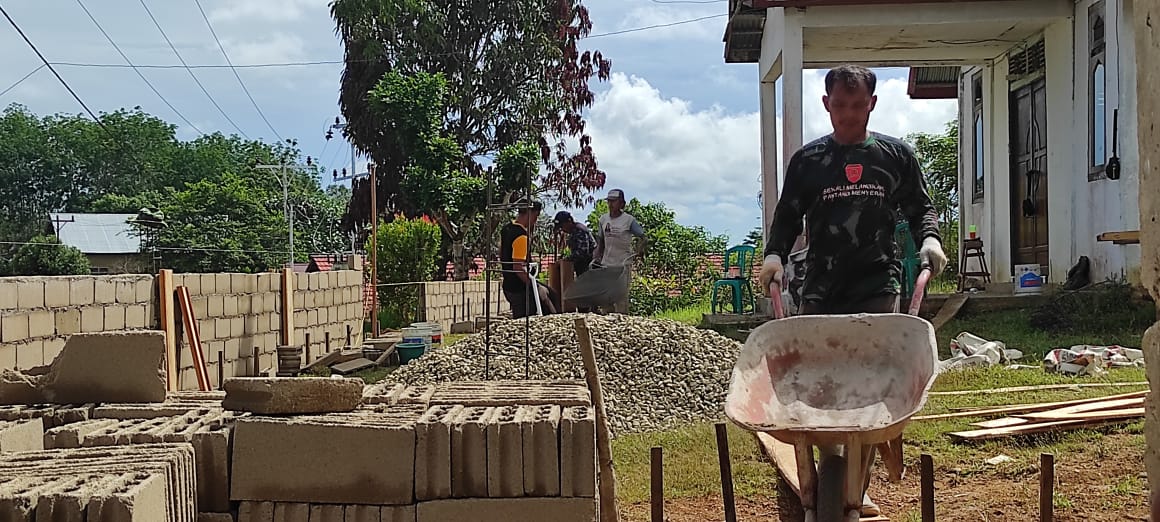 Pembangunan Pagar Gereja Oleh Satgas TMMD Ke-111 Kodim 1202/Skw Memasuki 45% Pengerjaan