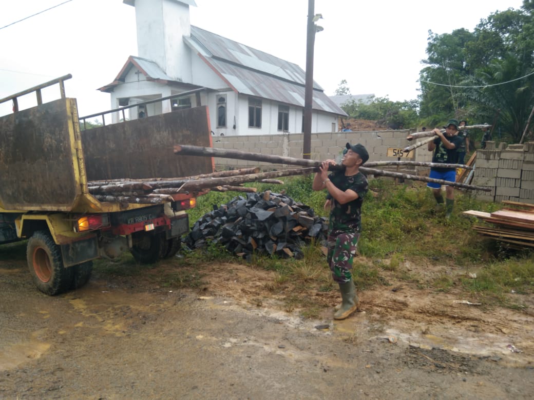 Pengangkutan Bahan Material Kayu Cerocok Oleh Satgas TMMD Ke-111 Kodim 1202/Singkawang