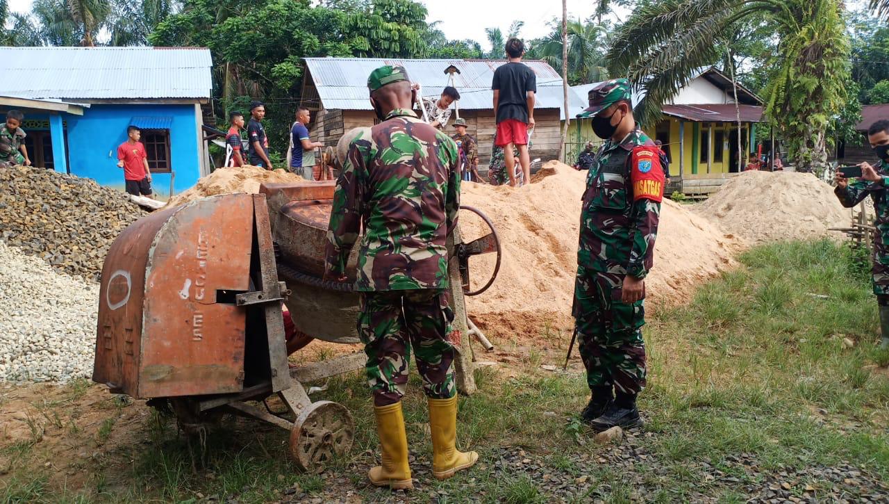 Pengecoran jalan terus dikebut. Meskipun panas terik matahari terasa membakar kulit, namun hal itu tidak menyurutkan niat anggota TNI dan masyarakat untuk terus bekerja. Terik matahari dan udara panas menjadi tantangan yang harus ditaklukkan. Bunyi mesin molen yang menggema ibarat lantunan lagu yang akan memberikan semangat di antara keringat yang bercucuran.