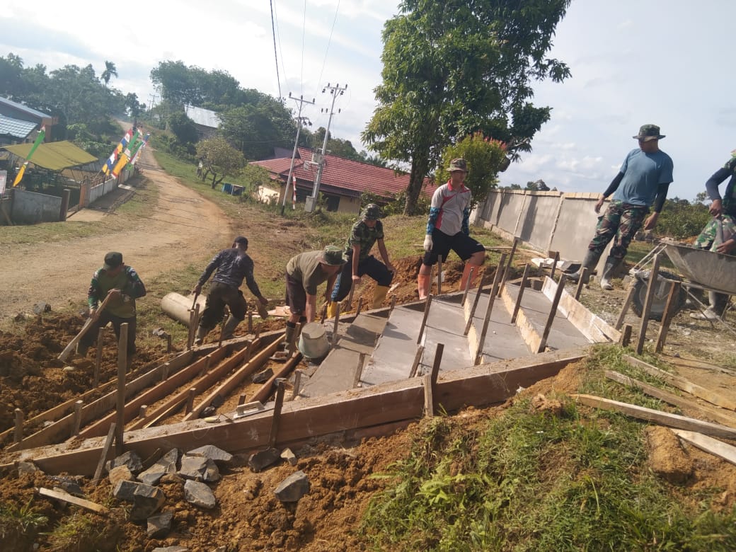Bengkayang – Pembagunan pagar Gereja Katolik Santo Kristoforus, yang merupakan sasaran TMMD Ke-111 Kodim 1202/Singkawang yang sedang berlangsung di Desa Sentangau Jaya, Kecamatan Seluas, Kabupaten Bengkayang, saat ini memasuki tahap pekerjaan pengecoran tangga gereja.