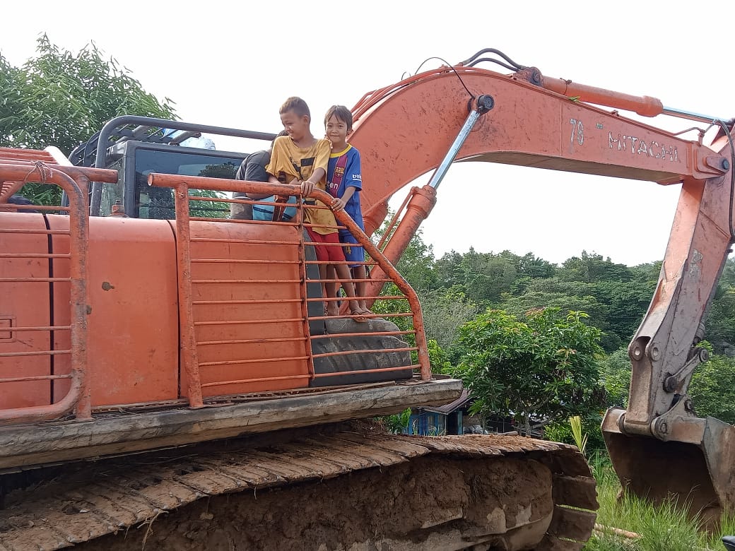 Rasa Penasaran Anak-anak Terobati Setelah Merasakan Langsung Naik Excavator