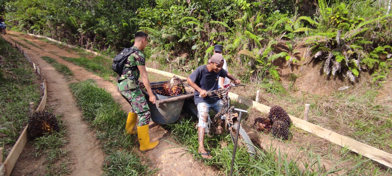 “Saya bangga melihat semangat anggota TNI yang masih mau membantu saya memanen sawit. Pada hal mereka baru habis bekerja dari pagi membuat jembatan desa kami,” kata Pak Hery.