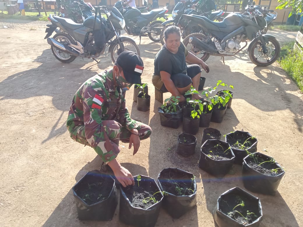 Satgas TMMD 111 Kodim 1202/Skw Bantu Petani Tanam Bibit Cabe