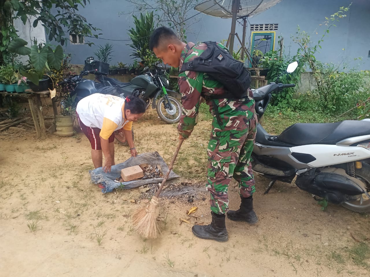 Satgas TMMD Bantu Bersihkan Pekarangan Rumah Warga
