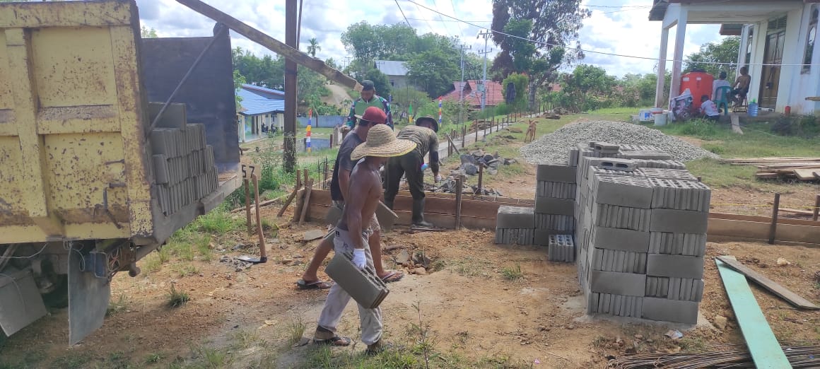 Adapun rencana material batu bata tersebut digunakan untuk kegiatan TMMD ke 111 Kodim 1202/Skw, terlihat Anggota satgas bersama Warga Saling bekerja sama menurunkan batu bata nantinya jembatan cepat selesai di kerjakan.