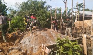 Bengkayang – Satgas TMMD ke 111 Kodim 1202/Skw Serda Alpon menyempatkan diri membantu warga menebang pohon pisang di Dusun Trimulya Desa Sentangau Jaya Jalan Trans Segorong Kecamatan Seluas Kabupaten Bengkayang.