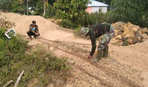Bengkayang – Satgas TMMD ke 111 Kodim 1202/Skw Serda Alpon menyempatkan diri membantu warga menebang pohon pisang di Dusun Trimulya Desa Sentangau Jaya Jalan Trans Segorong Kecamatan Seluas Kabupaten Bengkayang.
