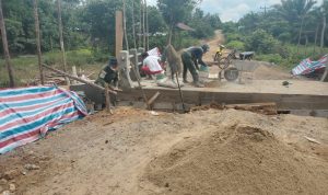 Bengkayang – Satgas TMMD ke 111 Kodim 1202/Skw Serda Alpon menyempatkan diri membantu warga menebang pohon pisang di Dusun Trimulya Desa Sentangau Jaya Jalan Trans Segorong Kecamatan Seluas Kabupaten Bengkayang.