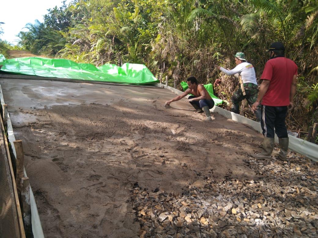 Dalam kegiatan pembangunan sasaran fisik pengecoran jalan masyarakat bahu membahu membangun sasaran fisik mensukseskan TMMD ke-111.