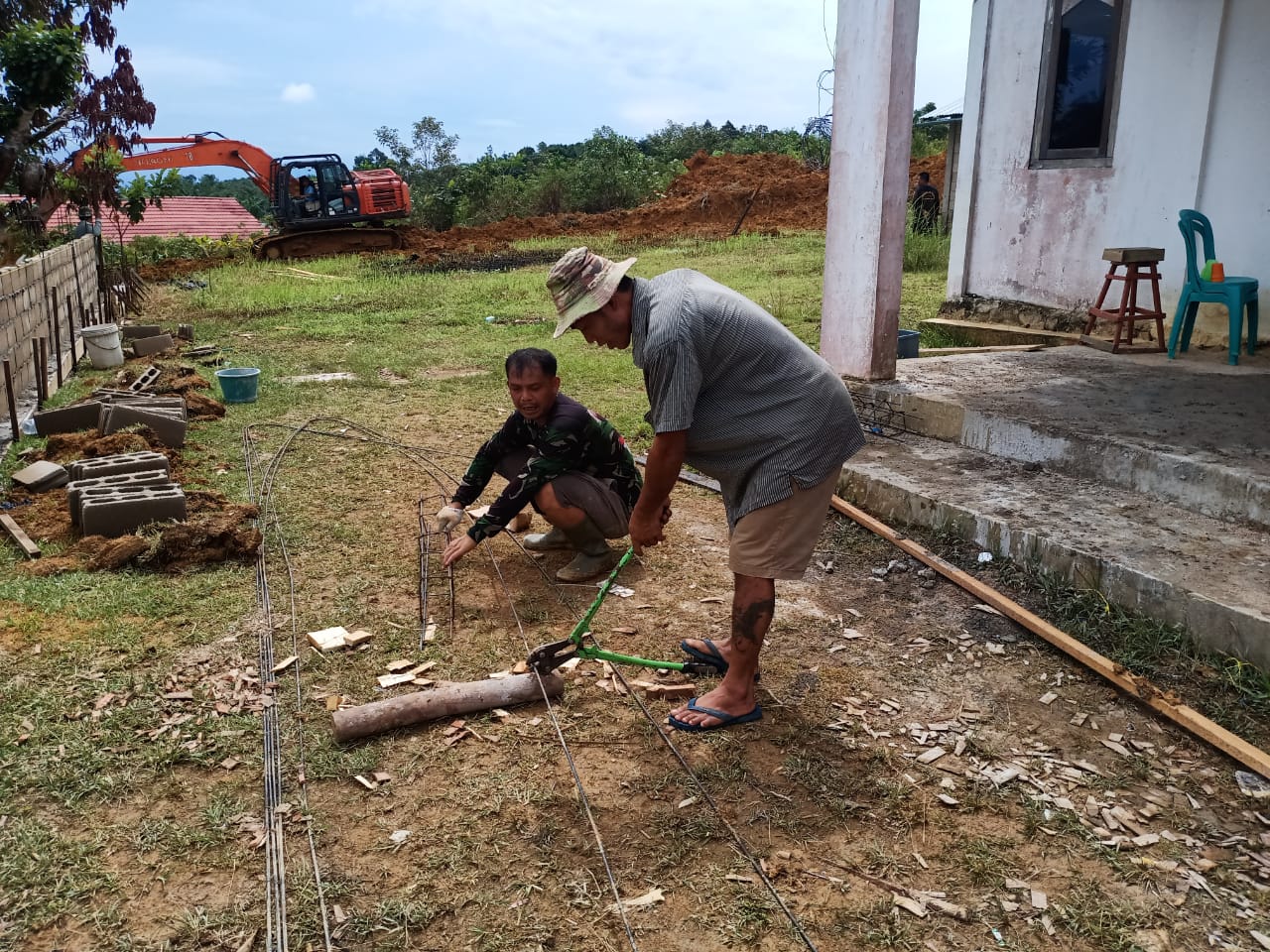 Bengkayang– Satgas Tentara Manunggal Membangun Desa (TMMD) Ke-111 Kodim 1202/Singkawang, di Desa Sentangau Jaya, Kecamatan Seluas, Kabupaten Bengkayang mulai menyiapkan bahan untuk memasang rangkaian besi untuk pengecoran pagar gereja.